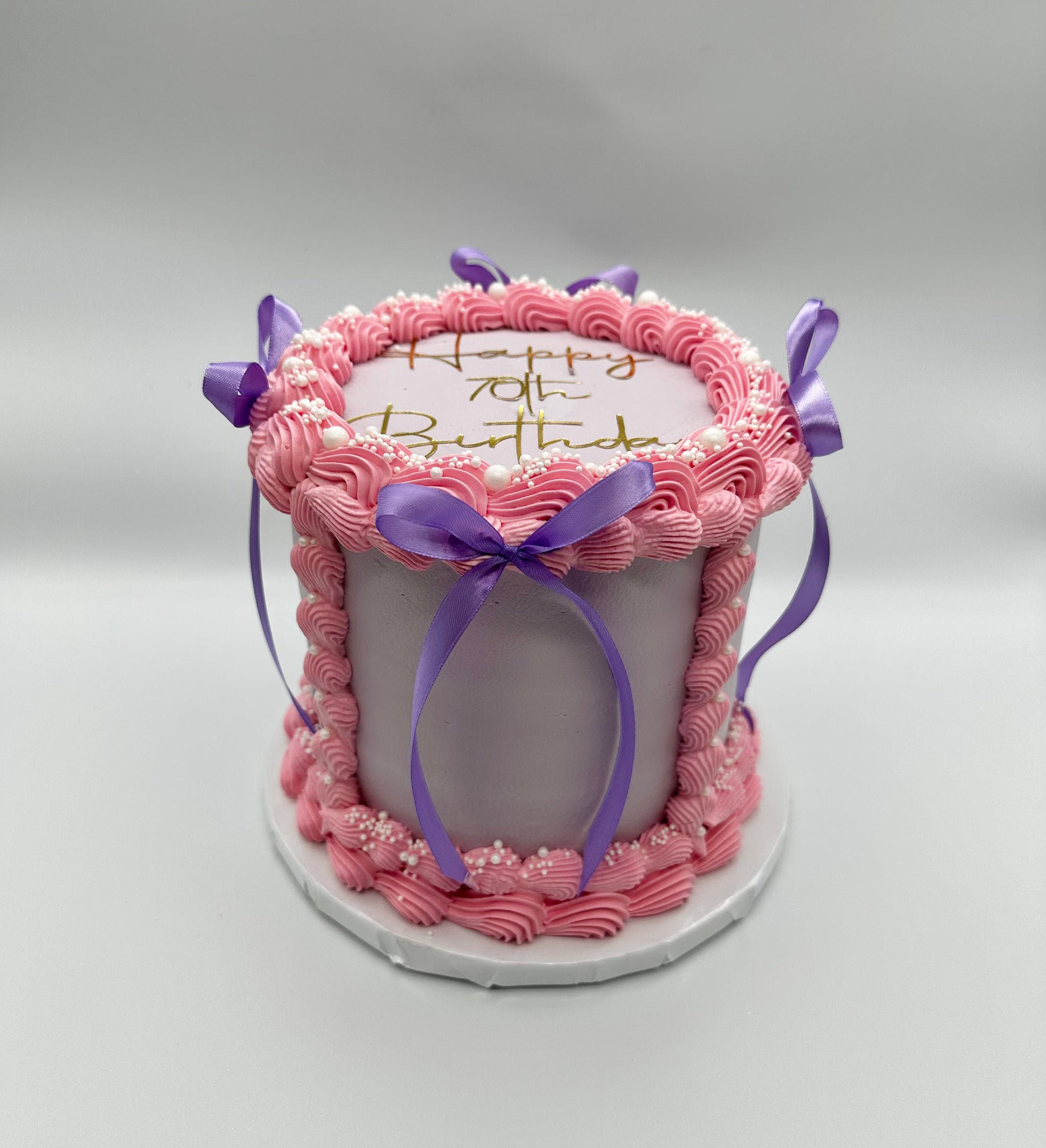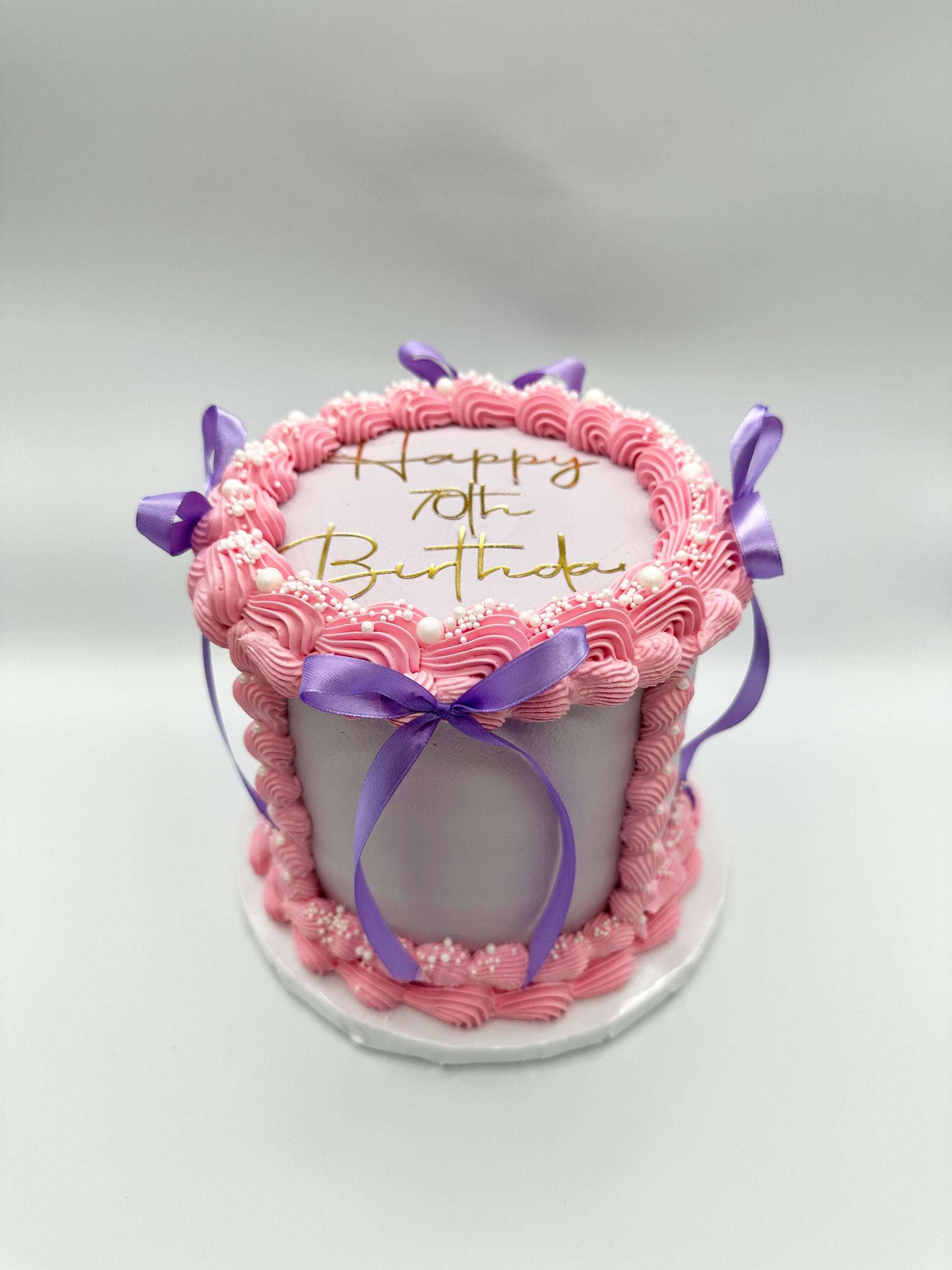 Timeless, elegant, and completely customizable, our Vintage Bow Cake is the perfect statement piece for any special occasion. This stunning three-layer sponge cake is designed with intricate piped buttercream or fresh cream details, delicate edible pearl accents, and elegant satin bows, bringing a touch of vintage charm to birthdays, anniversaries, and celebrations of all kinds.